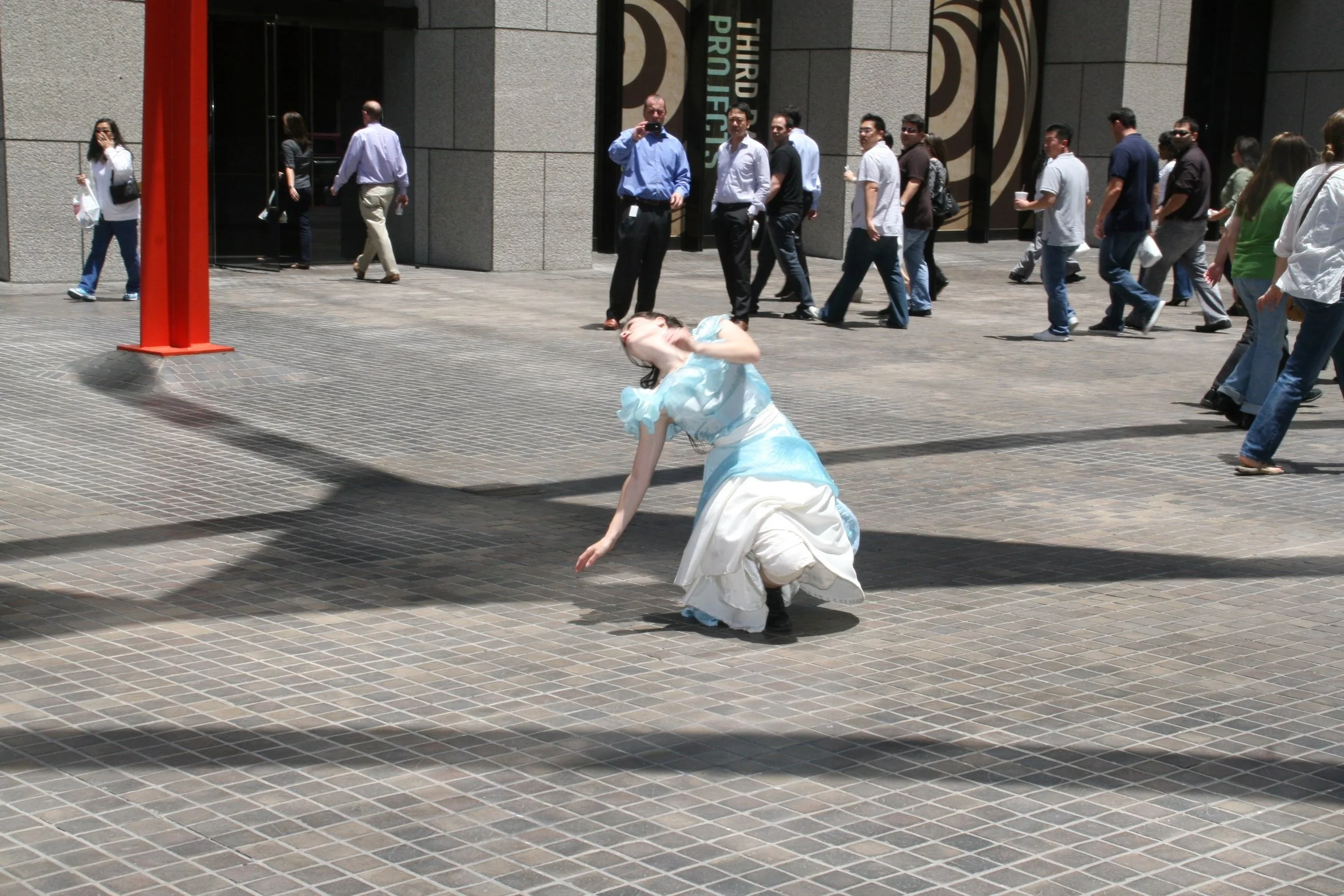 Arts Brookfield presented Looking Glass as a site-specific, sophisticated, bold and visually stunning reimagining of Alice’s Adventures in Wonderland and Through the Looking Glass. Created by New York City’s Bessie Award-winning performance company Third Rail Projects, Looking Glass was a site-specific dance performance event that inhabited the gardens, plazas, and public areas of Bank of America Plaza in downtown Los Angeles from June 23rd – 25th, 2011. Programmed on a 30-minute loop for a two-hour period, audiences could come and go to the free performance, explore the gardens, watch short sections, or picnic and watch as a visually mesmerizing and lushly choreographed experience unfolded all around them.